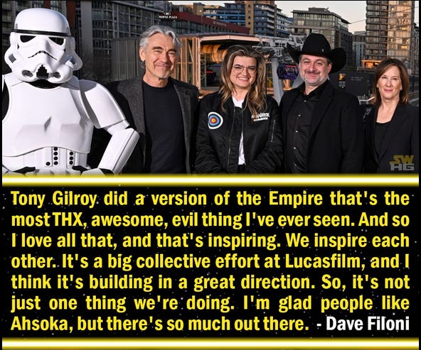 One thing worth addressing, there has been some internet chatter that Filoni did not like Andor. As far as I can tell, this allegation is based on a single anonymous source from an article in The Wrap, titled “Kathleen Kennedy’s Lucasfilm Legacy: A Galaxy in Disarray.” The article is a little more even-handed than the titled would indicate, but we’ll get into the reactions and what I think is an incredibly misguided (putting it nicely) view of Kennedy is a bit.