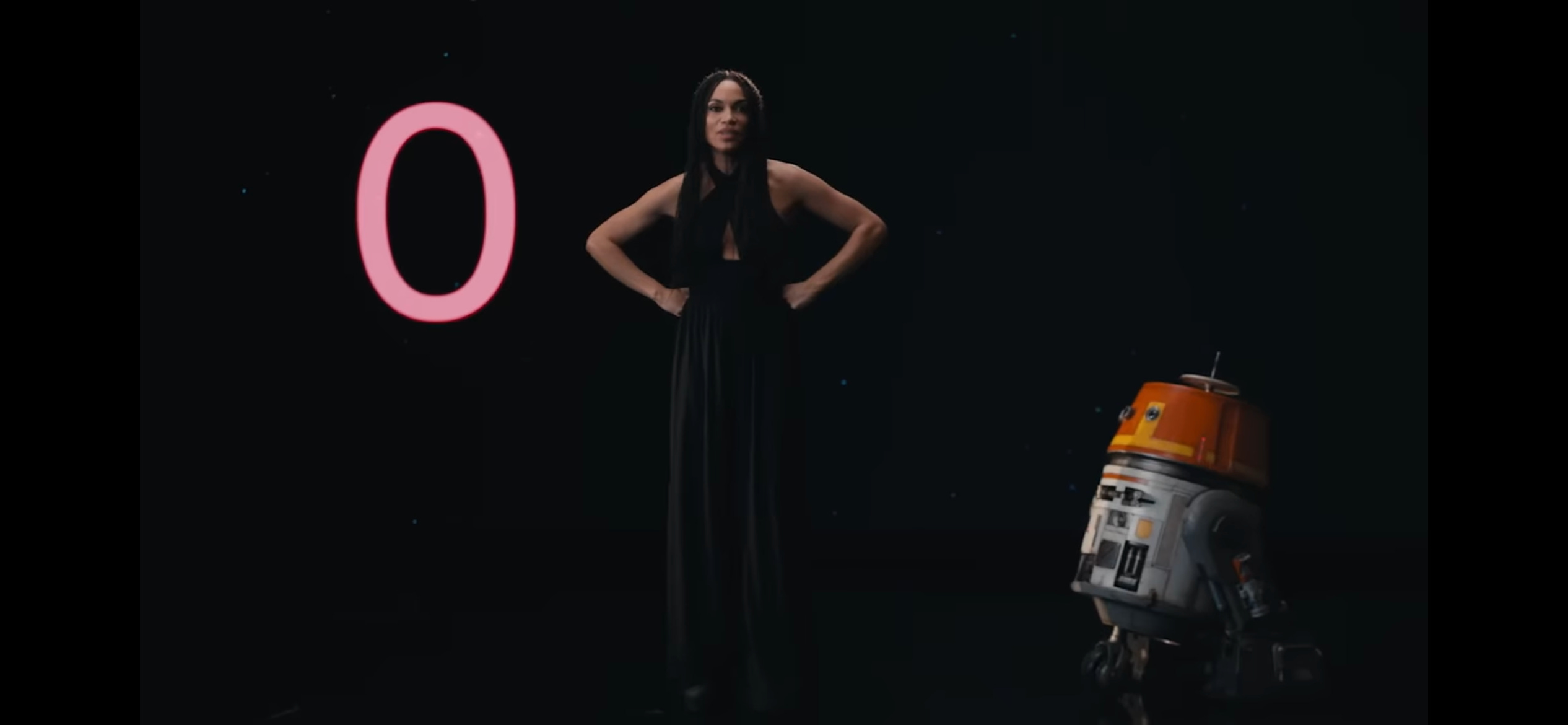 The first one, titled “Rosario Dawson’s Ahsoka in 30” is exactly what it sounds like. Dawson gives a 30 second rundown on Ahsoka Tano’s backstory and what we’re going to get in the new series. There’s nothing new in terms of information or footage, but if you haven’t watched the Clone Wars and Rebels cartoons, it’s a quick way to learn what’s going on. We also get a surprise guest at the end, Chopper!