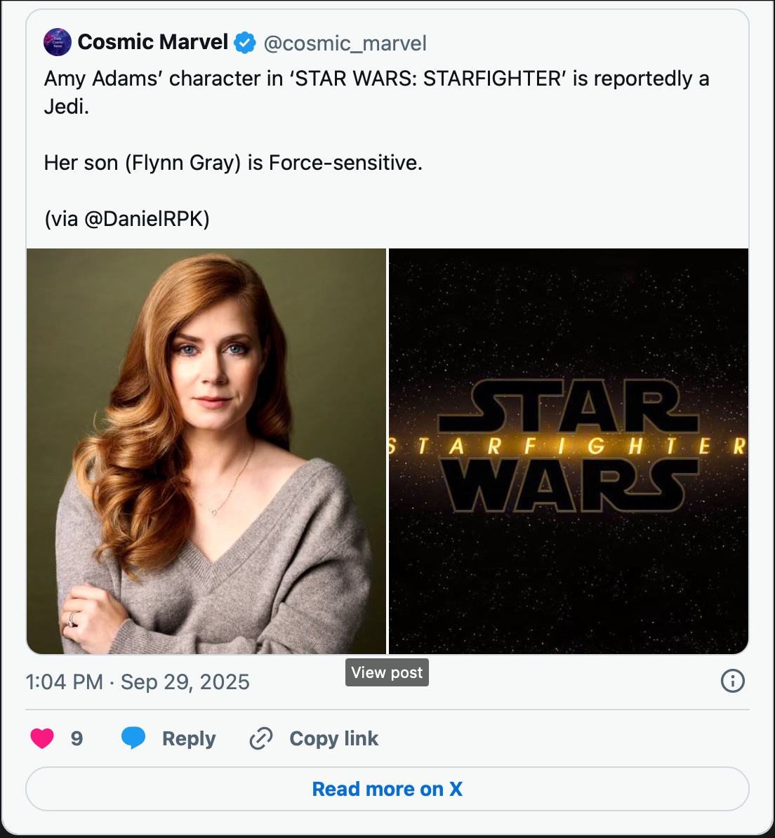Star Wars fans were thrilled when Amy Adams joined the cast of Star Wars: Starfighter, Shawn Levy’s upcoming Star Wars movie. They were particularly excited because the redhead was confirmed to be a mother to Flynn Gray’s young Force-sensitive character, and many suggested she could be a canon Mara Jade.