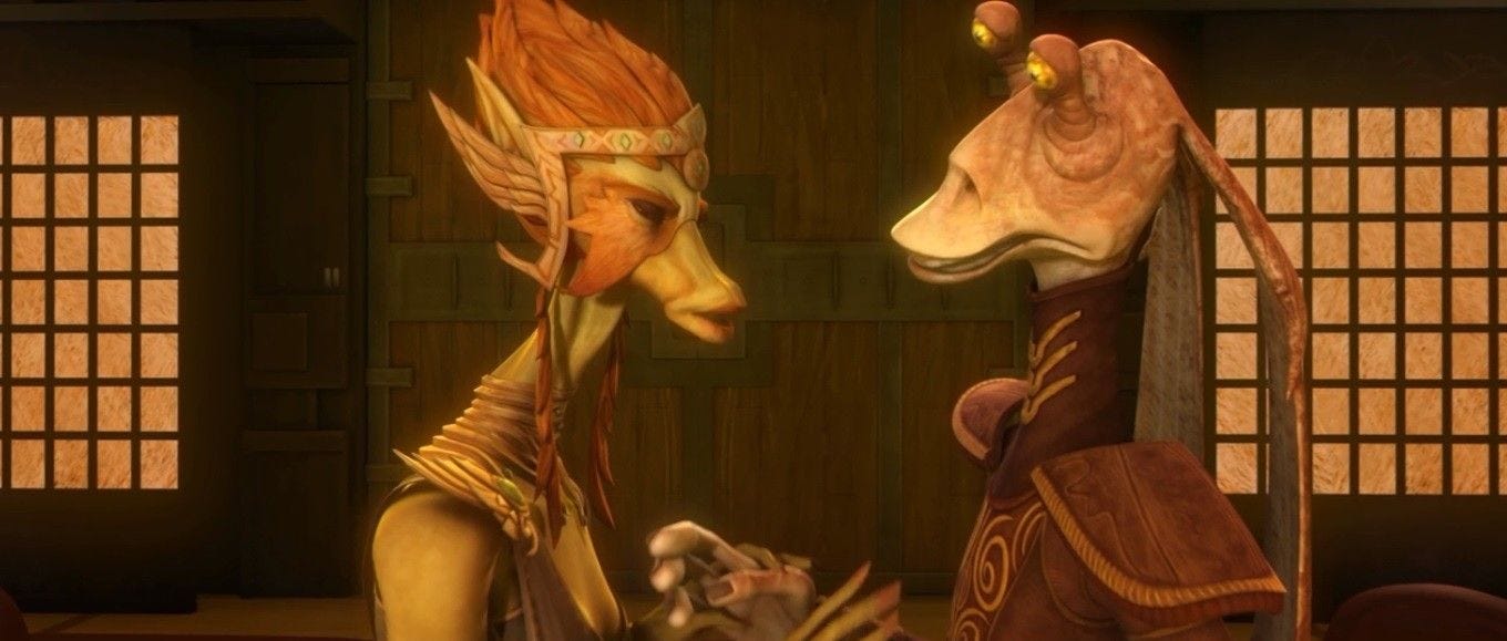 Happy Friday and welcome to this week’s edition of the Death Star Human Resources Department Newsletter. We’ve got a look at Episode 6 of The Acolyte where there’s less lightsaber and more talking but we maybe learned some things. I finally got around to finishing another book so we’re revisiting the Death Star HR book club. And I offer what is the definitive ranking of the Cute Little Guys, Disney TV show edition.