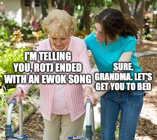 That sent me down a rabbit hole of feeling old. There are likely at least one, maybe two generations of Star Wars fans who have only ever known the Special Editions. Sure, they’ve heard bitter Gen X’ers talk about Han shooting first or “not my A New Hope” but they don’t actually know what I’m…I mean…the bitter Gen X’ers are talking about. We’re not that far removed from a generation of fans having no clue what “Yub Nub” is. They’ll think it’s something us old people made up.