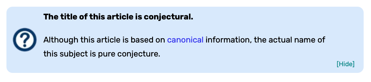 Whenever I see this warning on a Wookieepedia entry, you can almost always guarantee it’s an entry that shouldn’t actually exist.
