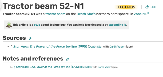 A short one that normally I would have skipped, but for the source. Go with me here. This week we’ve got Tractor Beam 52-N1. It’s a tractor beam on the Death Star. Not super interesting. But the source material is.