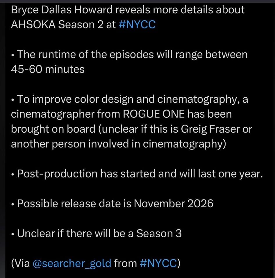 I meant to touch on this last week. All that to say, season 2 of Ahsoka has finished up shooting. Both Ivanna Sakhno and Natasha Liu Bordizzo confirmed it on their Instagram pages.